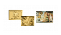 A rúd formájú színarany érme esterien adja vissza Botticelli "Vénusz születése" című művének lényegét. A festmény minden részlete a legnagyobb pontossággal jelenik meg az érmén, ami a művészet és numizmatika szerelmeseinek kiemelkedő gyűjtői darabjává teszi. A festmény nyugodt és harmonikus palettája által ihletett érmekártyába foglalva ez az aranyérme a művészi ragyogás és a nemesfém tökéletes keveréke. Természetesen az érmekártya segít megőrzni az érme érintetlen állapotát, valamint a biztonságos és esztétikus tárolást is lehetővé teszi.